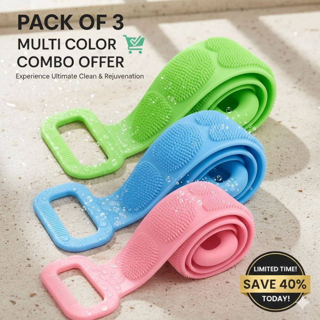 Make your daily bath easier and more hygienic with this Silicone Back Scrubber Belt – Pack of 3.