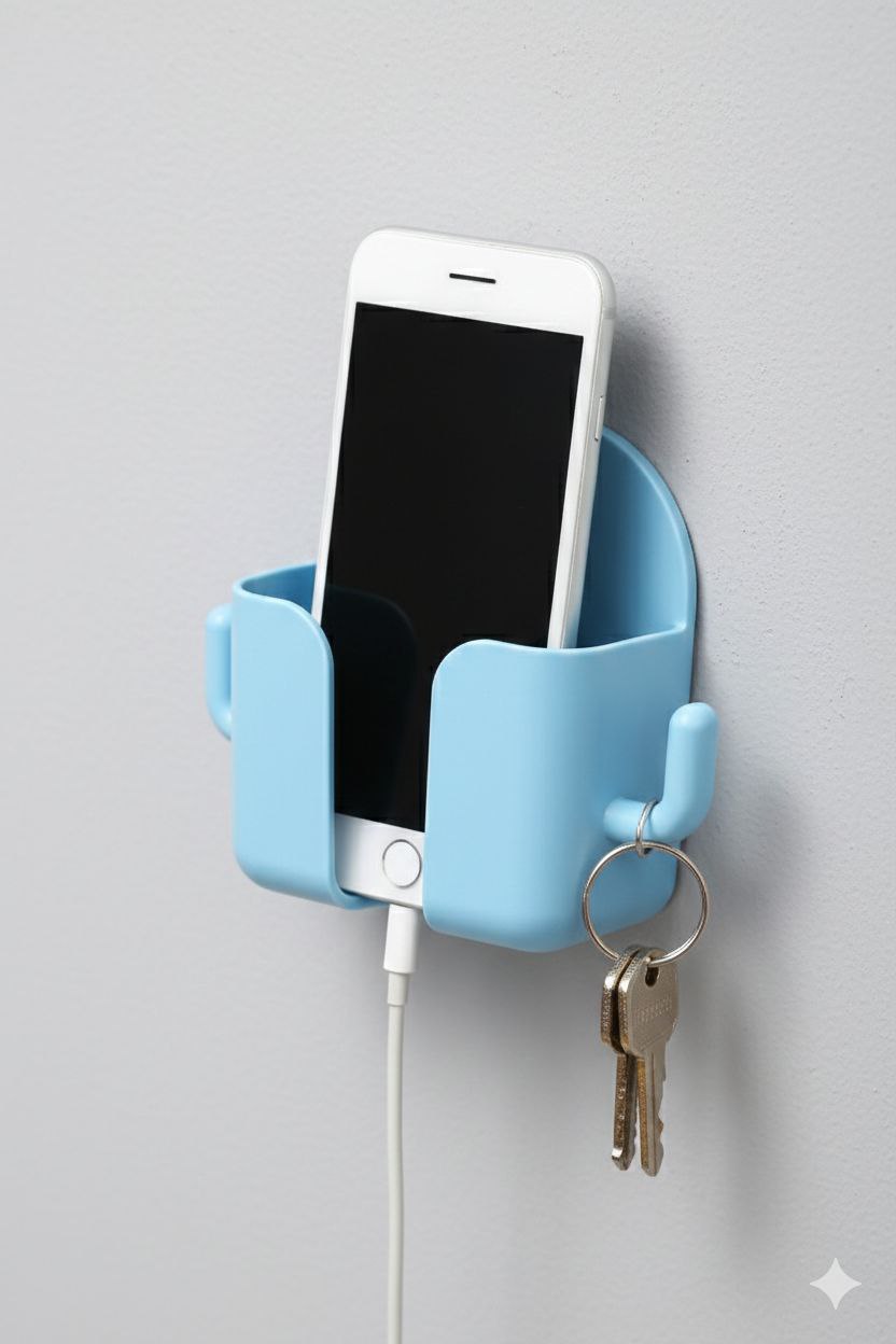 The dual-hook design provides extra hanging space for keys, cables, or earphones, while the main slot securely holds your phone or remote. Suitable for rent homes, bedrooms, living rooms, kitchens, offices, and near switchboards.